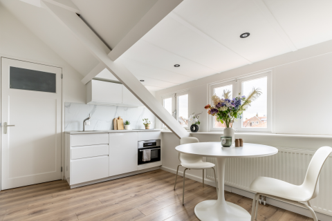 Parking for residents and guests is available right in front of the building. The recently renovated central hall provides access to the fifth floor via lift or staircase. A private storage room is located on the ground floor. The apartment is well maintained, and the complex has recently been fitted with HR++ double glazing.